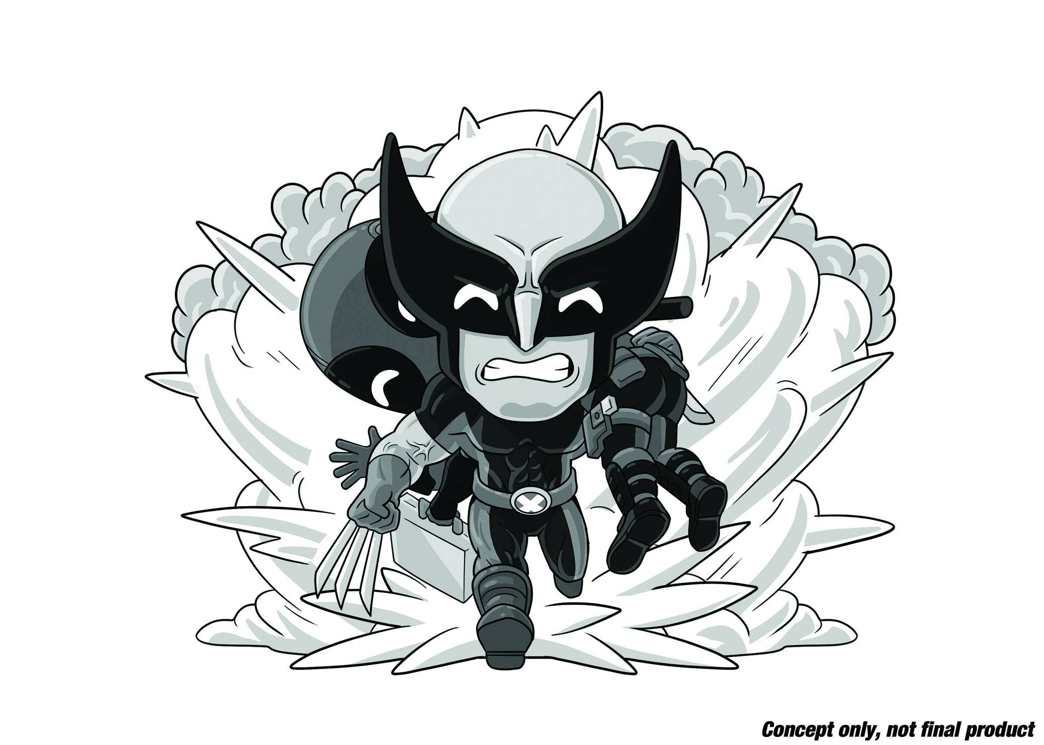 A PREVIEWS Exclusive! Erupting into Youtooz at 5 1/4" tall as they run from a bright explosion that sends billowing clouds and shrapnel out from behind them. Wolverine is in full stride with claws extended as he rushes forward with gritted teeth with frowning eyebrows seen through a pointed mask with Deadpool slung over his shoulder. While the perfect damsel in distress, Deadpool doesn't even worry about holding on, knowing he'll make it out fine. His bright white eyes are carefree as he tightly clasps a silver briefcase. The exterior of their packaging sees Deadpool and Wolverine mid-fight and floating in front of a distant earth, while the interior is covered in the light grey panels of Marvel comics. Exclusive to