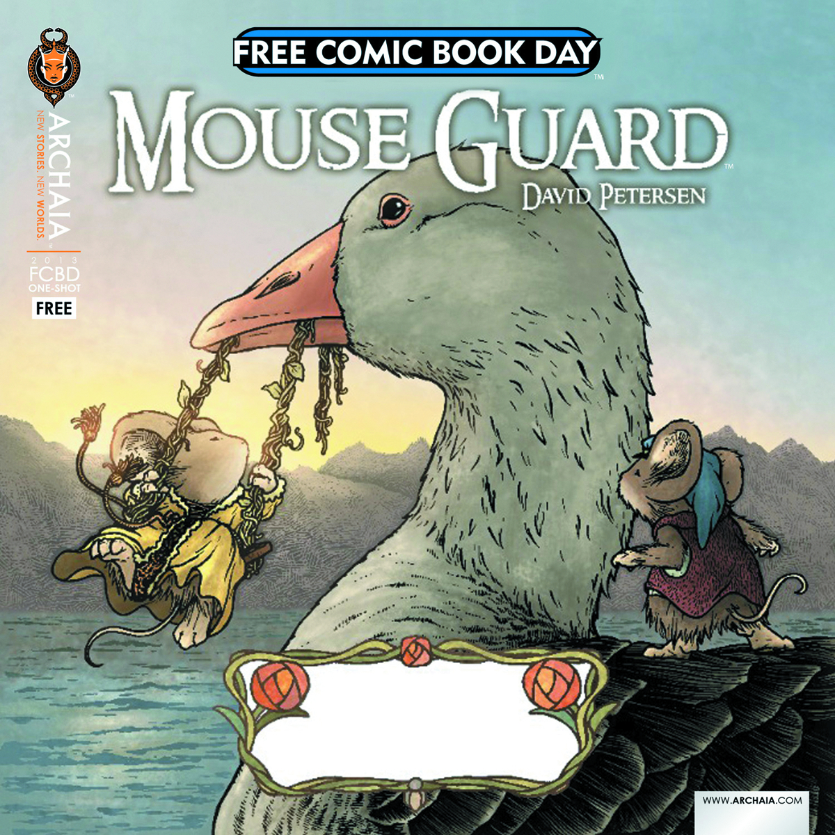 For Free Comic Book Day, Archaia is proud to present a square flip book containing a collection of original short stories from some of its all-ages-friendly titles! In David Petersen's Mouse Guard short, a young Sadie is told a mouse fairy tale about proving one's self and the best trait to look for in love. Royden Lepp's Rust tells how rocket-boy Jet Jones learns an important lesson while helping the younger members of the Taylor family with their daily chores on the farm. This spectacular, free one-shot also includes original short stories from Sean Rubin's upcoming, enchanting dinosaur tale, Bolivar; Jim Henson's fantasy classic, Labyrinth (an Archaia original graphic novel by Ted Naifeh, Adrianne Ambrose, and Cory Godbey is in the works); and Nate Cosby and Chris Eliopoulos' justice-seekin' boy hero, Cow Boy. As an added bonus, there's also fun Pantalones, TX activity pages by Yehudi Mercado!
