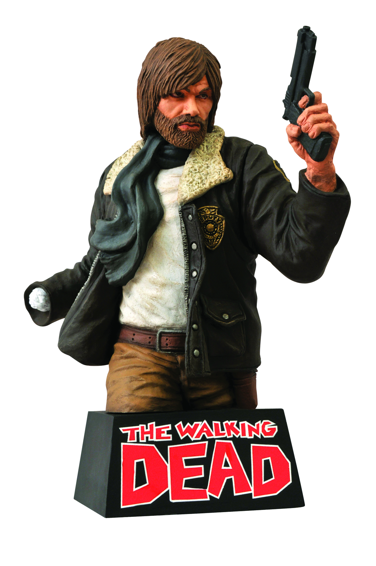 A Diamond Select Release! Sculpted by Eli Livingston! The popular line of Walking Dead banks continues with its first human character! This 8-inch vinyl sculpture of protagonist Rick Grimes is based on his appearance in the acclaimed Walking Dead comic book series, and while it looks like a bust, it's actually a bank, with a coin slot in the back as well as an opening in the base! Factor in Rick's collectible-quality paint and sculpting, and your zombie banks won't stand a chance!